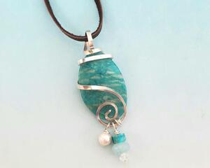 Amazonite Surrounded Necklace - Silver Swirl Necklace